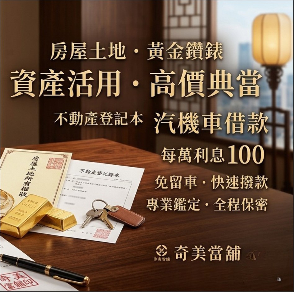 「別讓您的資產睡著了!奇美當舖,把不動產變現金流。」